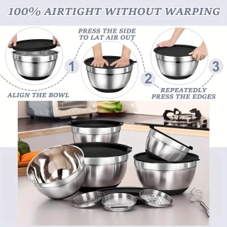 Get bowled over with this chic 8-Piece Stainless Steel Mixing Bowl Set! Designed to make mixing, baking, and serving a breeze, these bowls blend style with functionality, adding flair to your culinary creations.