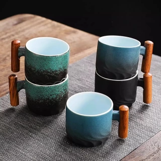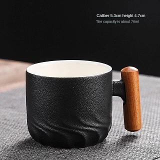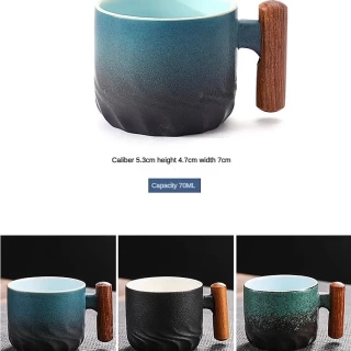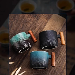 Designed with a comfortable wooden handle, this mug offers a warm, rustic touch to your coffee experience. The high-quality ceramic ensures durability while being free from harmful chemicals, making it a safe choice for everyday use.